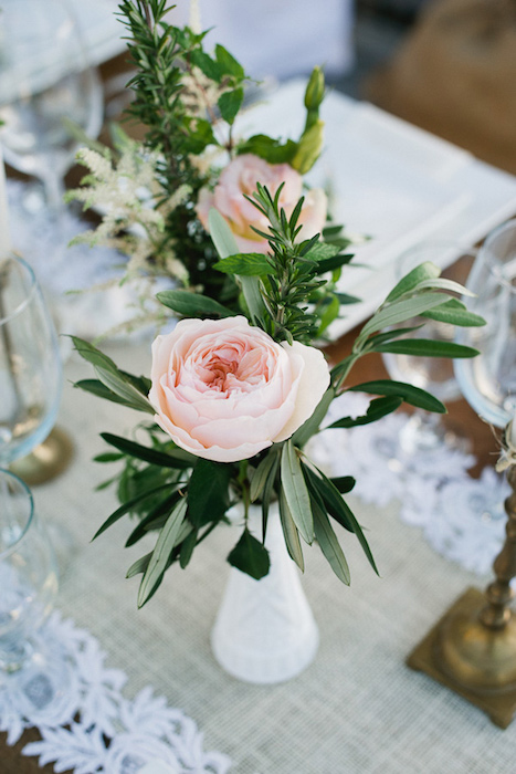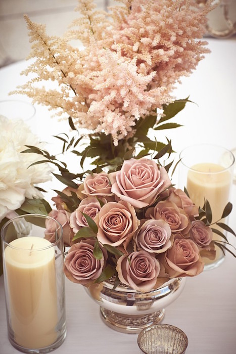 Những bông hoa tươi được rải rác kết hợp tạo nên một vẻ đẹp hoàn thiện. Màu sắc của hoa hồng rất dễ dàng kết hợp với những gam màu cổ điển của tiệc cưới.
