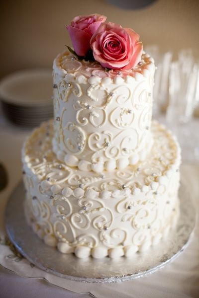 Hoa hồng có thể dễ dàng kết hợp với 1 chiếc bánh màu trắng đơn giản để tạo sự sang trọng.